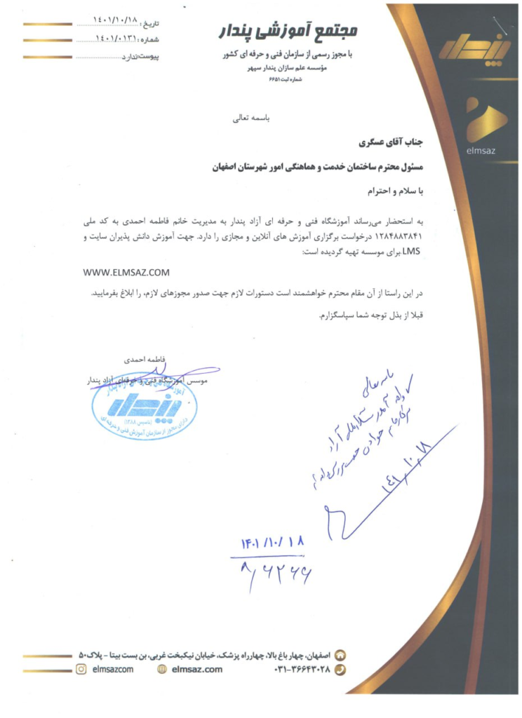 قوانین علم ساز بر اساس آخرین تغییرات آموزش آنلاین فنی و حرفه ای با موضوع ارائه خدمات آموزش مهارت توسط آموزشگاه به كارآموز میباشد و به شرح ذیل می باشد. در این وبسایت کدوره های آموزشی به فروش می رسد و مدرک دورهها بعد از قبولی در امتحان فنی و حرفه ای کشور توسط سازمان فنی و حرفه ای صادر می گردد. فروش و ارسال کالا توسط این وبسایت انجام نمی گیرد.