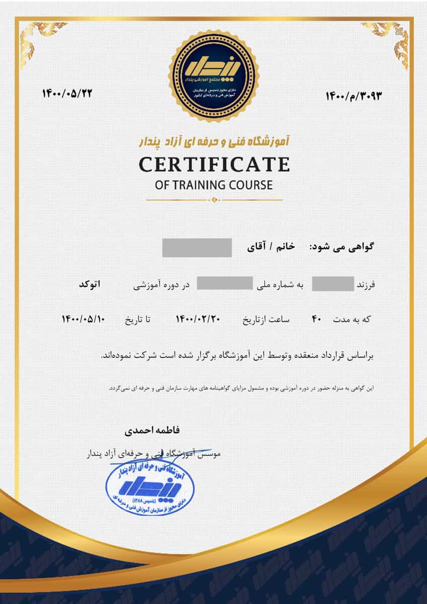 علم ساز بعد از طی دوره به شما گواهینامه معتبر فنی و حرفه ای ارائه خواهد نمود.