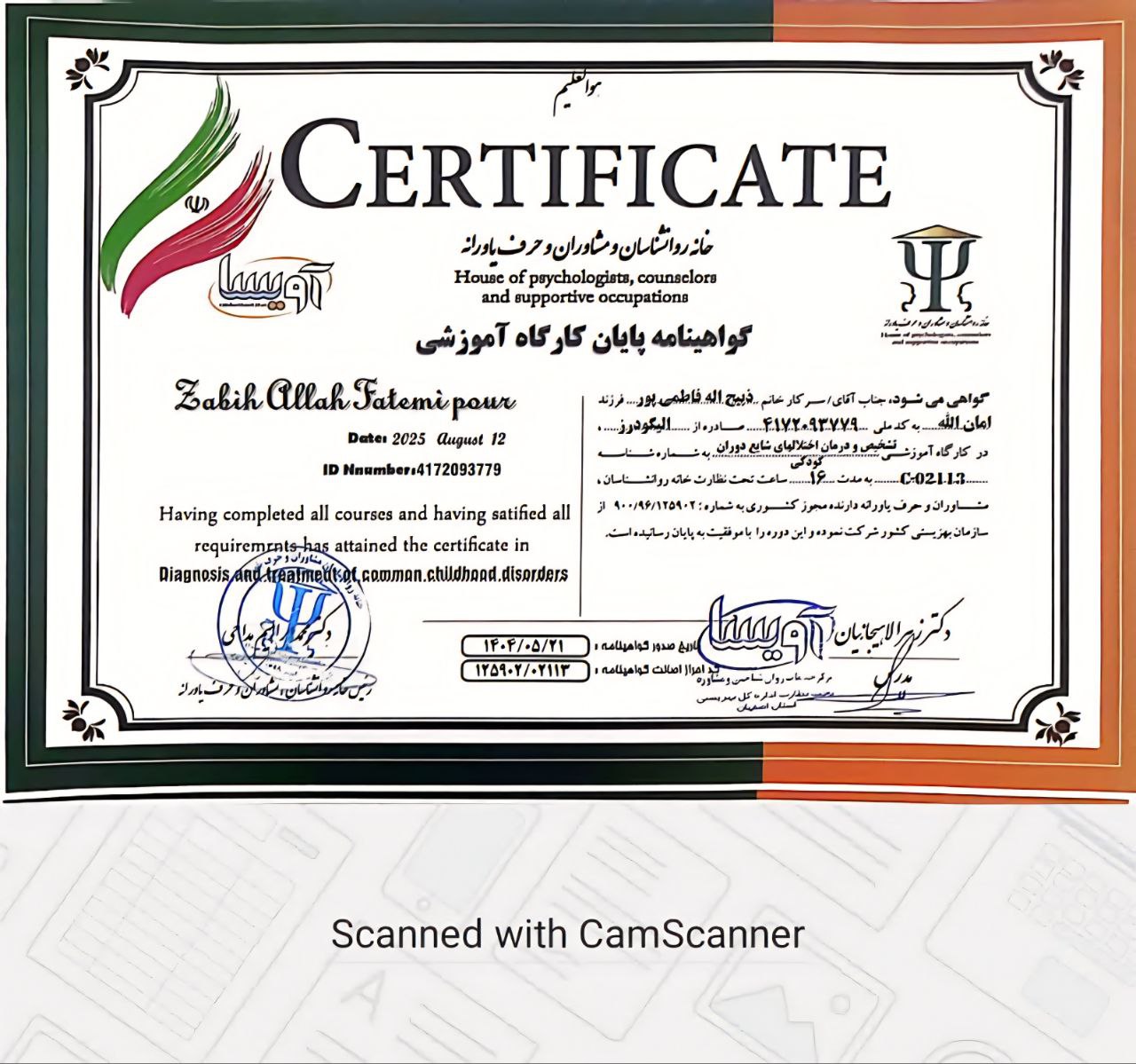 نمونه مدرک دوره